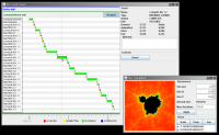 Notes: Currently, all events are associated with the same command queue and device, but of course, this is not the intention: The internal data structures already aim at supporting the visualization of multiple devices and multiple command queues for each device. This is currently not supported due to some flaws of the existing OpenCL implementations, of which some do not allow obtaining the command queue for an event, the device for a command queue, or precise timing information for events on multiple devices. However, when this utility turns out to be useful and these functionalities are provided by future OpenCL implementations, they will be integrated into the event tracer utility. The following screenshot shows another example: Here the event tracer was used to trace the events in the "JOCLMandelbrot" sample from the samples section, which divides the region of interest into smaller tiles and computes these tiles individually.